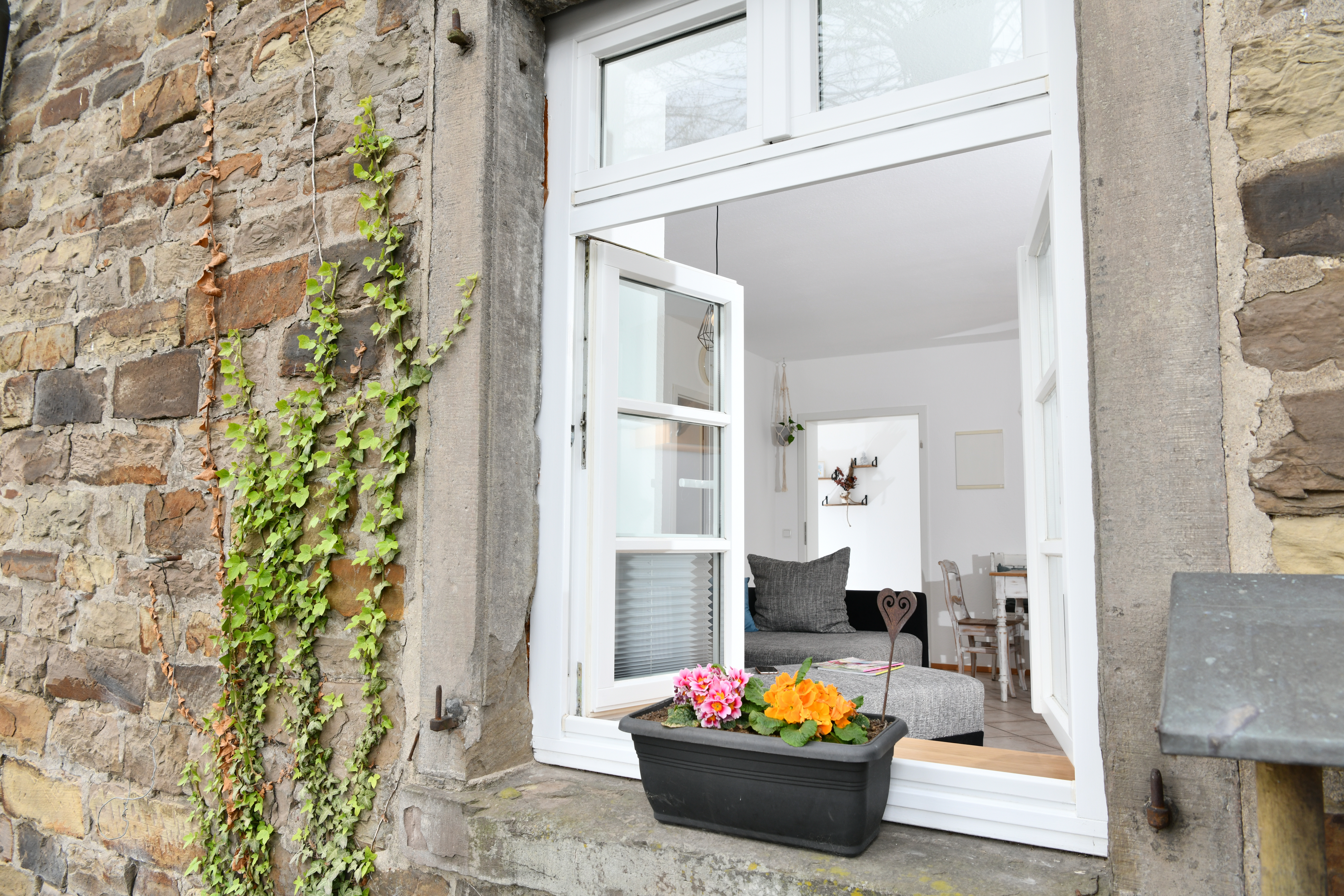 Große Fenster, warme Farben und liebevolle Details schaffen eine Atmosphäre zum Wohlfühlen – für eine kleine Auszeit oder einen längeren Aufenthalt.