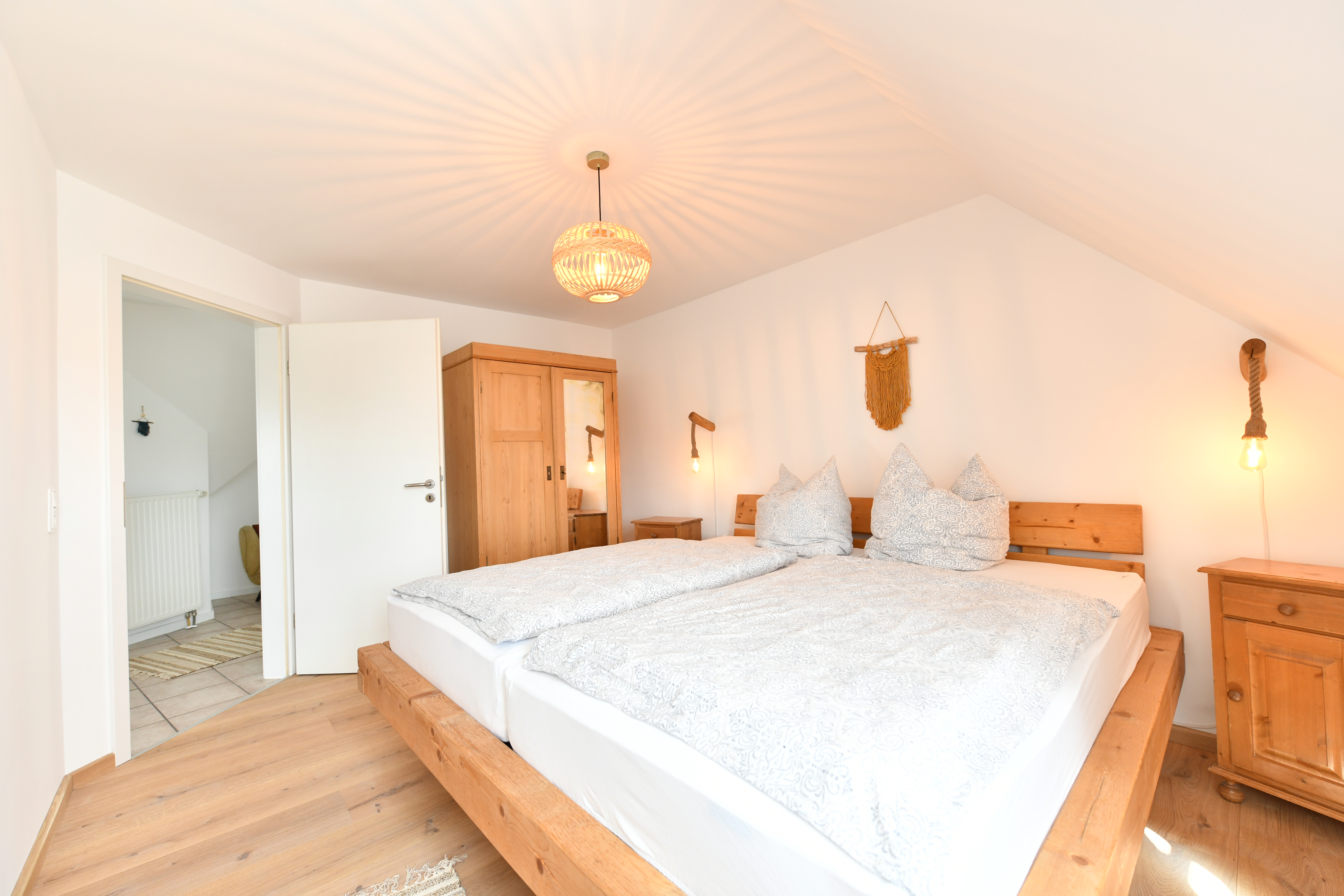Unsere lichtdurchfluteten und freundlich gestalteten Wohnungen sorgen dafür, dass Du Dich sofort wohlfühlst. Zudem legen wir großen Wert auf Nachhaltigkeit, weshalb die Einrichtung umweltfreundlich und ressourcenschonend ausgewählt wurde. Die Wohnungen sind liebevoll eingerichtet und schaffen eine entspannte Atmosphäre, in der Du Dich wie zu Hause fühlen kannst. Hier kannst Du nach einem erlebnisreichen Tag entspannen und die angenehme Umgebung genießen.