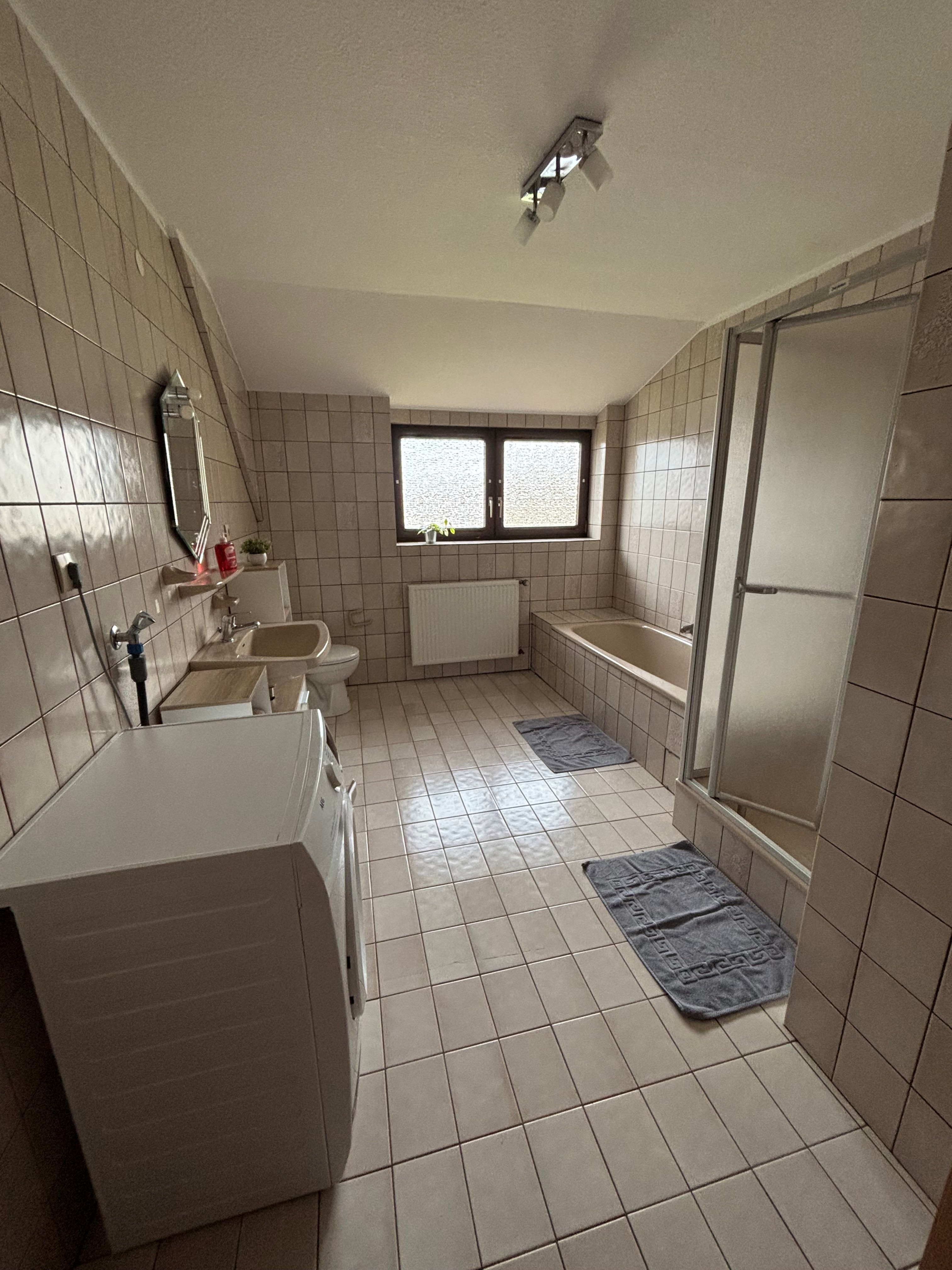 eine voll ausgestattete Küche, ein gemütliches Wohnzimmer, ein großes Badezimmer inklusive Waschmaschine sowie einen Balkon zum genießen.
